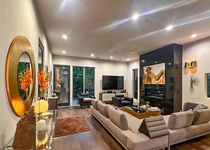 ビバリー庭園公園から歩いて20分に位置するベッドルーム4室のLuxury Living In West Hollywood Modern 3Br Home W Pool & Hot Tub ロサンゼルスは、庭園の眺めを望むテラスを提供しています。 Bristol Farms West Hollywoodほんの数分のこの別荘にのお客様は、Wi-Fiと無料の専用駐車場を利用することができます。